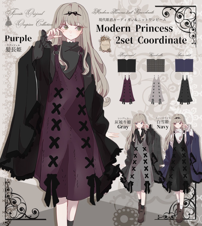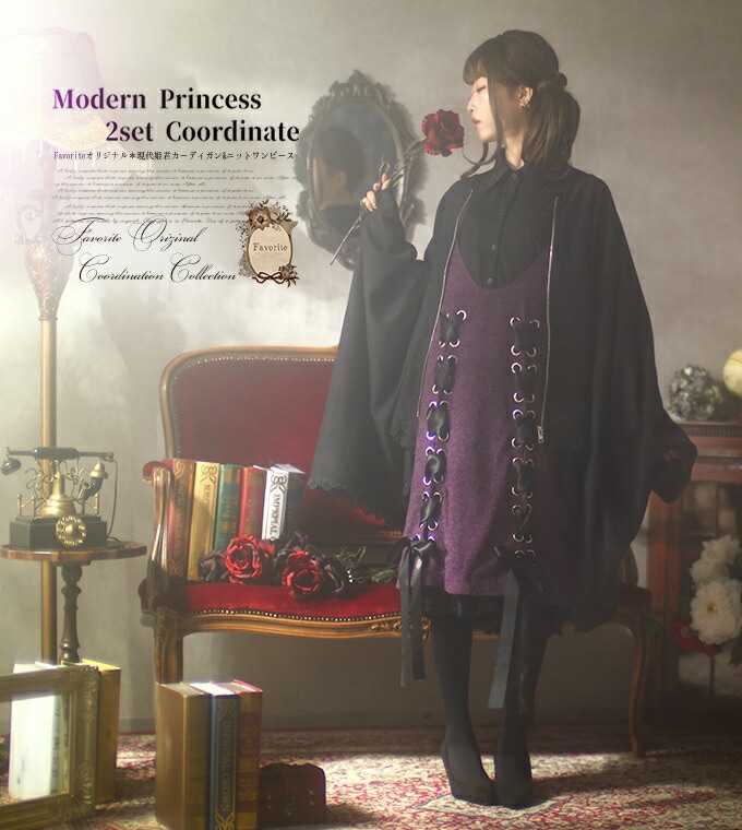 ワンピース カーディガン 2点セット ミディアム丈 ポンチョ ニット レースアップ レース 童話*Favoriteオリジナル*現代姫の2点コーデセット【2021年10月下旬予約開始】
