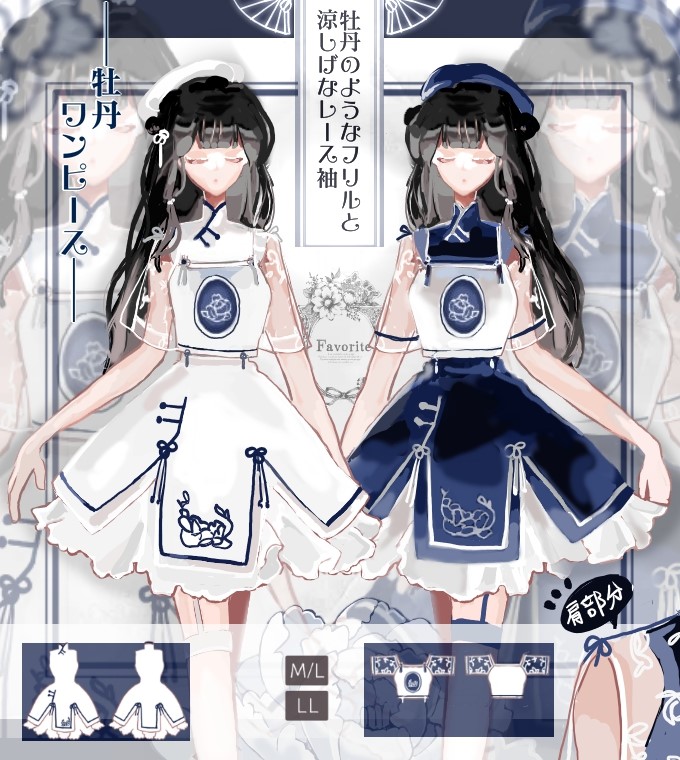 ワンピース ミディアム丈 トップス レース シースルー チャイナドレス 中華 大人*Favoriteオリジナル*フリルと涼しげなレース袖*牡丹ワンピース【2023年5月下旬予約開始】