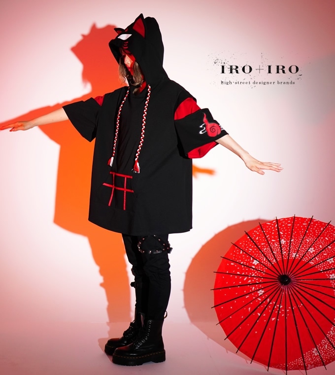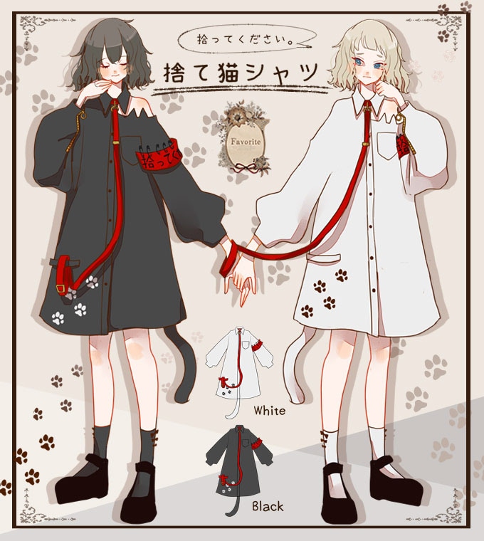 シャツ ユニセックス ねこ ネコ 捨て猫 しっぽ付き 首輪*Favoriteオリジナル*首輪風装飾の捨て猫ちゃんロングシャツ ブラック 黒【IRO+IRO】【2021年2月中旬予約開始】