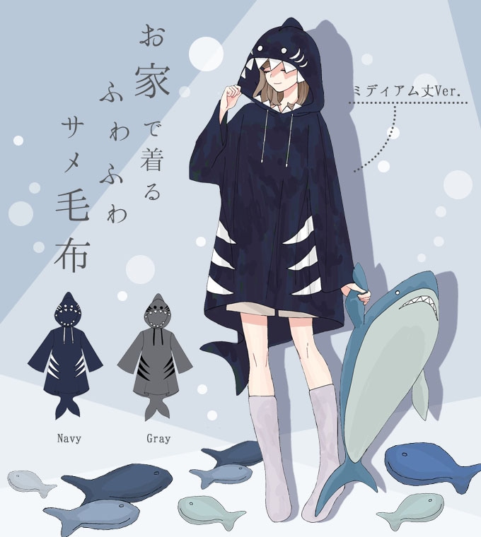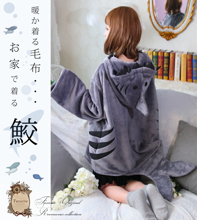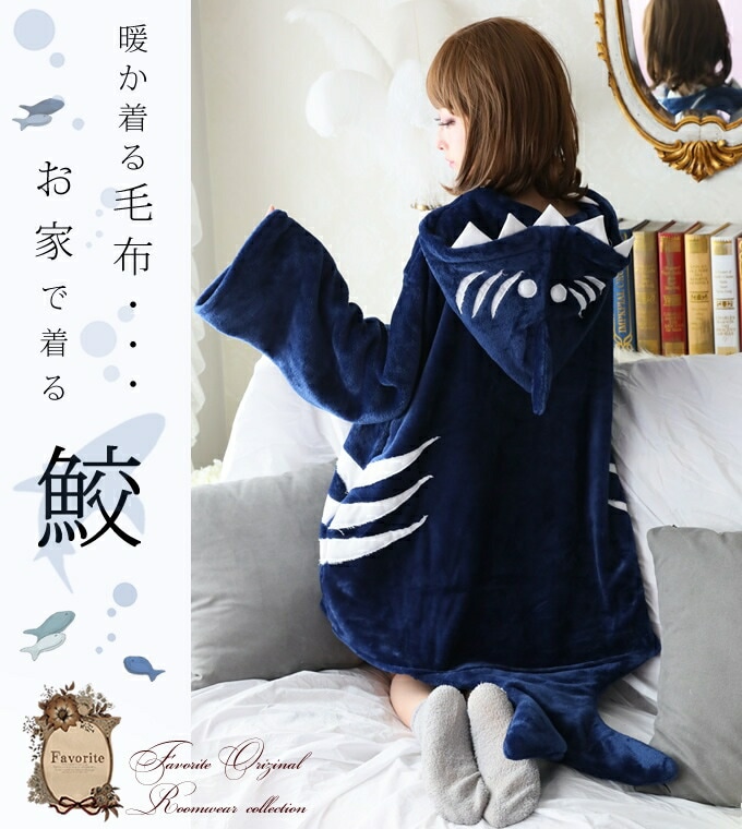 着る毛布 ルームウェア ユニセックス ふわふわ アニマル 鮫 さめ *Favoriteオリジナル*ふわふわ毛布で夢心地♪サメモチーフ着る毛布ルームウェア ミディアム【2020年10月下旬予約開始】