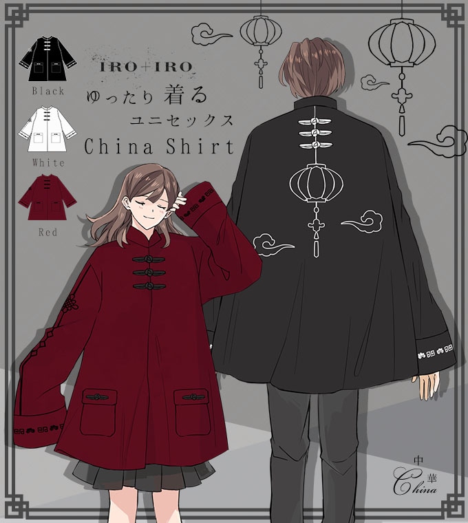 トップス シャツ ビッグシルエット ユニセックス チャイナ 中華*Favoriteオリジナル*チャイナボタン×ランタンシルエットのユニセックスチャイナシャツ。【2020年11月下旬予約開始】