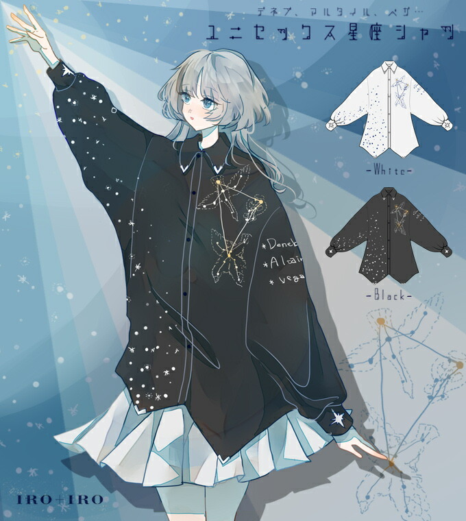 トップス シャツ ユニセックス プリント 星座 星 夏の大三角*Favoriteオリジナル*夜空に煌めく夏の大三角☆.+星座プリントのドルマンスリーブシャツ【2021年3月下旬予約開始】