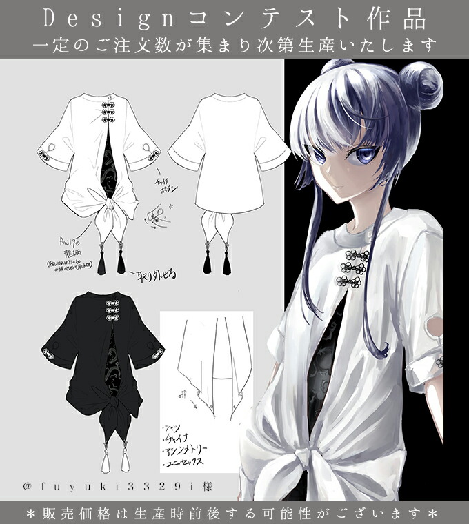 シャツ ユニセックス アシンメトリー チャイナ 中華*お客様Designコンテスト作品*Favoriteオリジナル*チャイナボタンの龍柄アシンメトリーシャツ【2021年5月中旬予約開始】