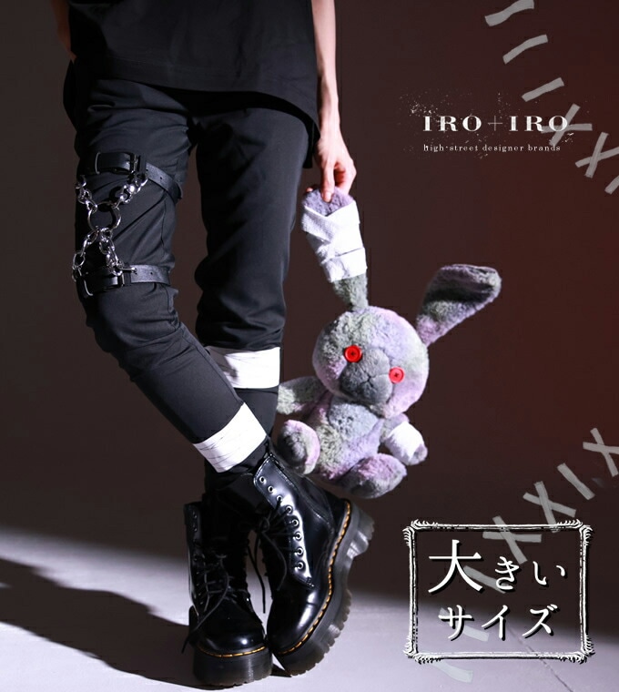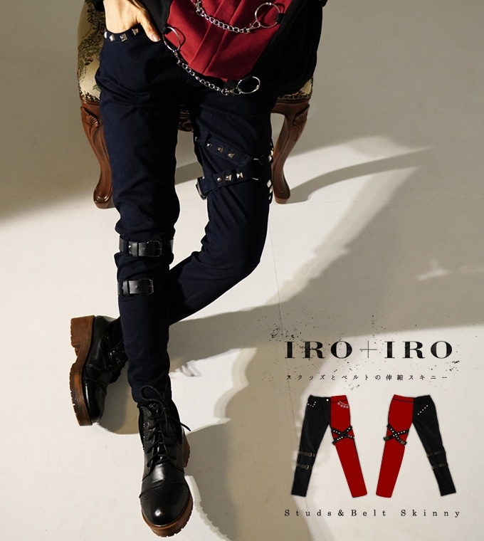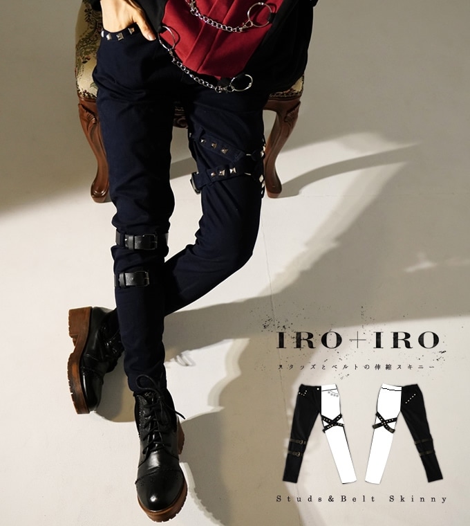 大きいサイズ ボトムス スキニーパンツ ユニセックス ベルト スタッズ*Favoriteオリジナル* ベルトスタッズデザインスキニーパンツ【IRO+IRO】【2019年8月下旬予約開始】