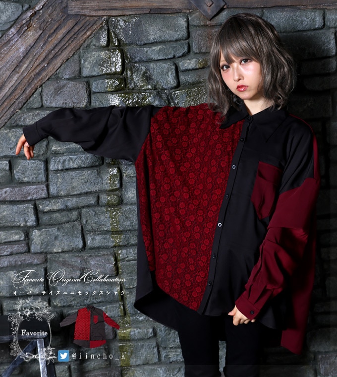トップス シャツ ユニセックス 秋冬 オーバーサイズ*Favorite×YOU いいんちょ*Favoriteオリジナル*バイカラー花柄オーバーサイズシャツ 【2019年11月上旬予約開始】