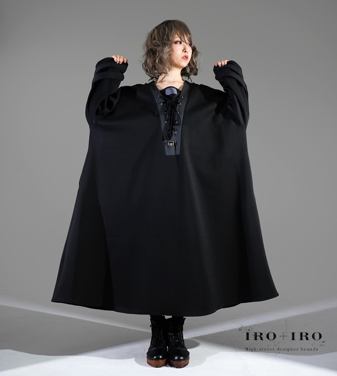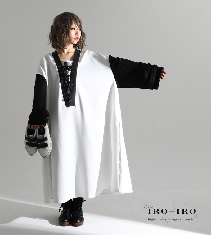 パーカーワンピース マキシ丈 ユニセックス スニーカーイメージ*Favoriteオリジナル*スニーカーモチーフの胸元レースアップパーカーワンピース【IRO+IRO】【2019年12月中旬予約開始】