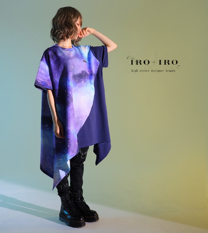 Tシャツ ユニセックス 宇宙柄 アシンメトリー バイカラー 紺* Favoriteオリジナル*宇宙バイカラーユニセックスTシャツ ネイビー【IRO+IRO】【2020年5月中旬予約開始】